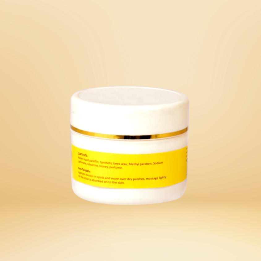 Water, Liquid Paraffin, Synthetic bees Wax, Methyl Paraben, Sodium Carbonate, Glycerine, Honey, Perfume.